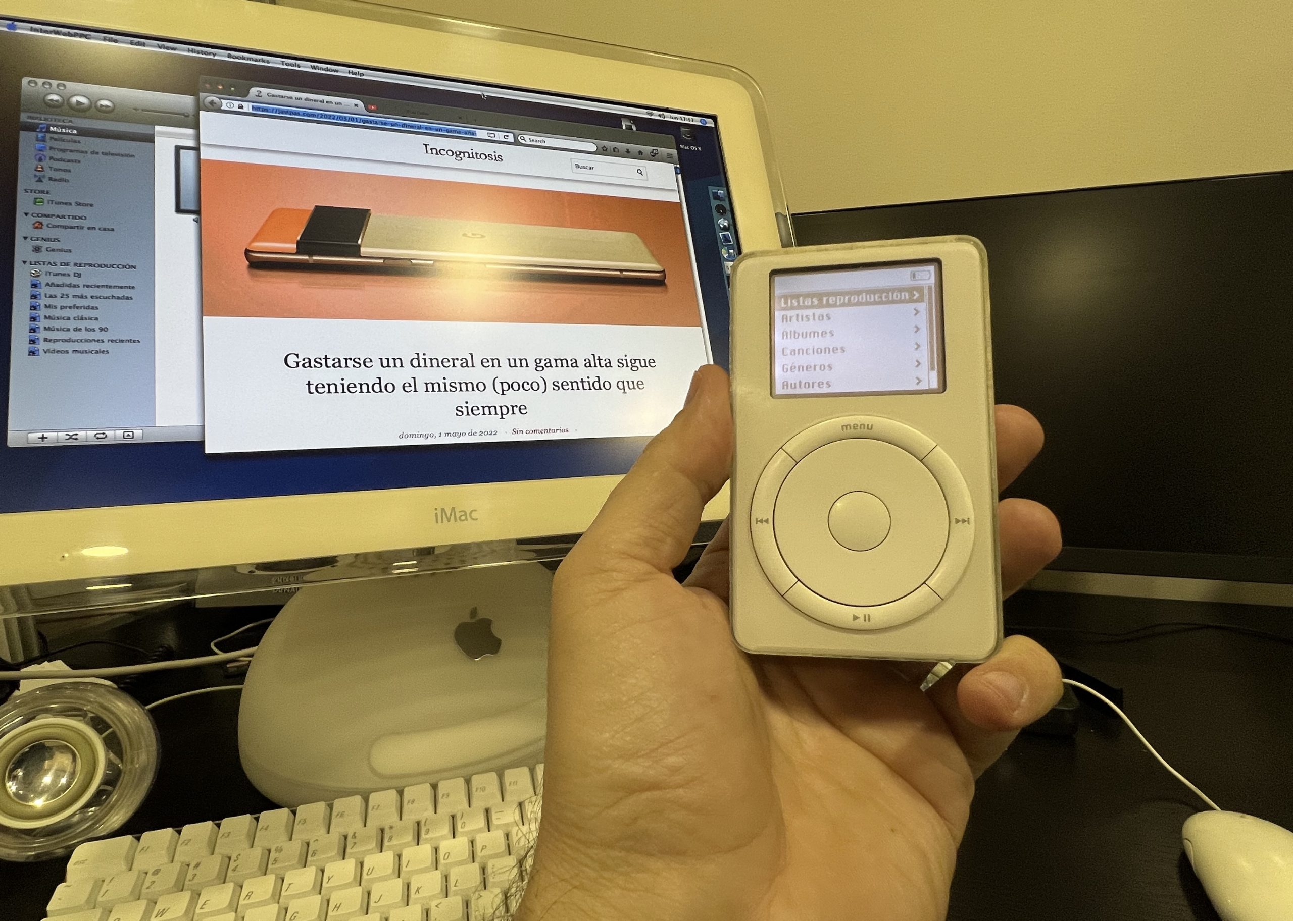 Ahí es cuando Xavi me enseñó otro de sus tesoros: un iPod de primera generación que de hecho había sido suyo y seguía funcionando sin problemas tras un pequeño cambio de su disco duro interno. Transferencias por puerto FireWire al poder, qué fuerte.