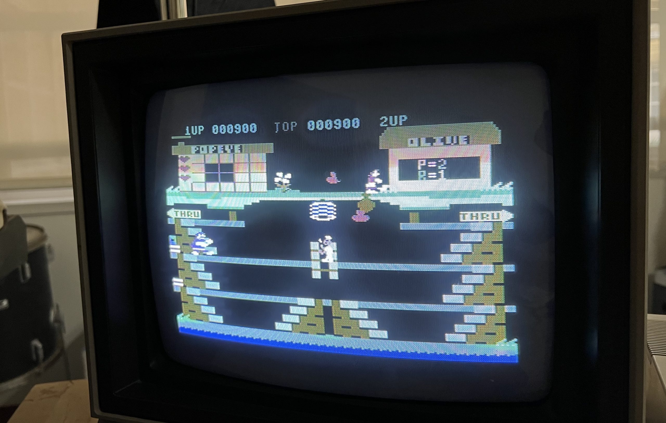 Luego nos pusimos a probar algún viejo juego que de repente apareció en la lista de disponibles. 'Operation Wolf' —grandioso, aunque luego lo pusimos en su recreativa con Mame y aquello ya eran palabras mayores— y otros como 'Paperboy' —ostras qué difícil— o 'Popeye', que yo no conocía y que, ojo al dato, fue la inspiración para el mítico 'Donkey Kong' y otros juegos del estilo.