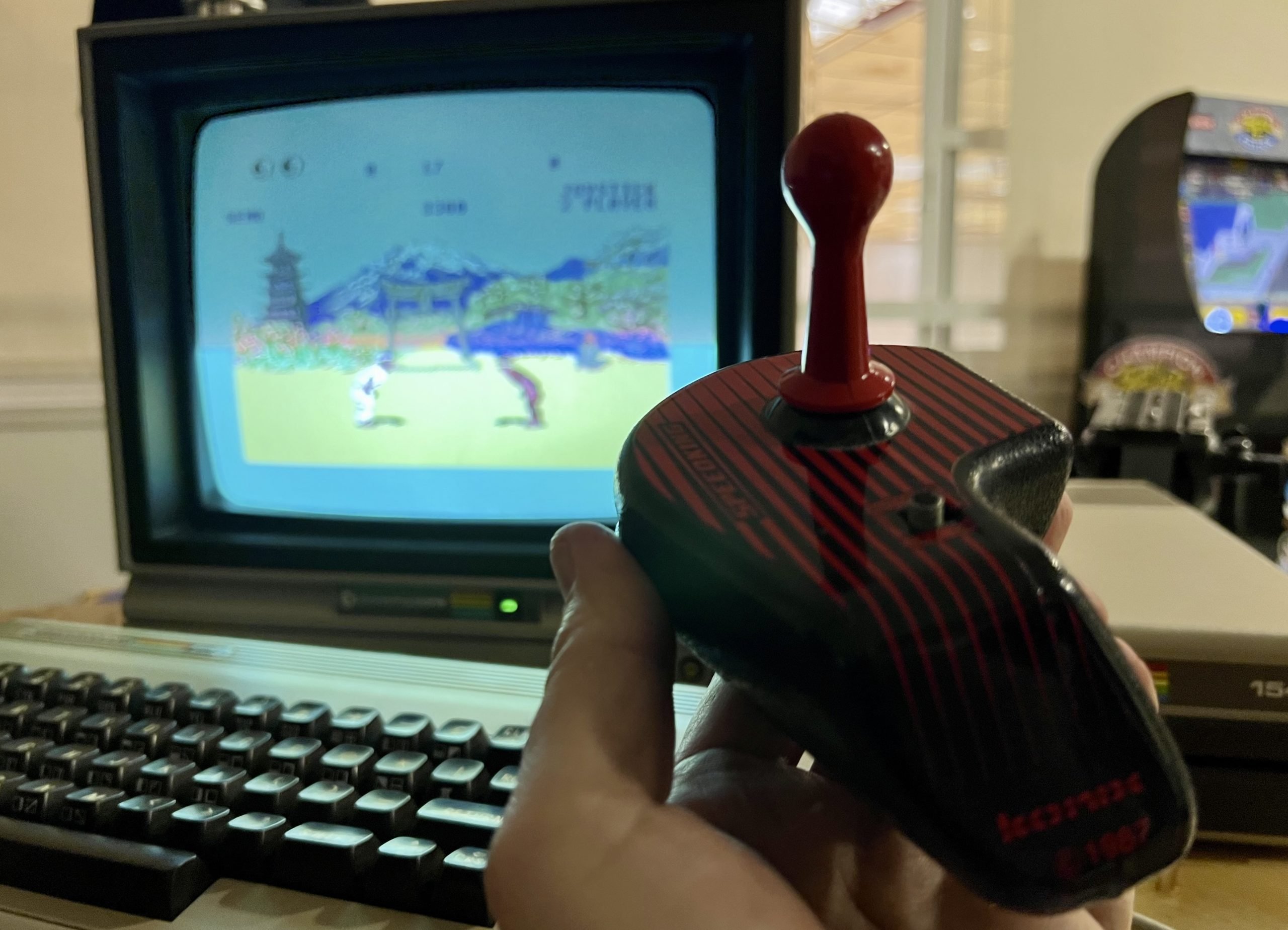 Por ejemplo, 'The Way of the Exploding Fist', otro de los míticos de la época que también aproveché a lo bestia en mi niñez y que no tenía mucho que ver con los juegos de lucha actuales. Me pregunto si de hecho no tendría sentido rescatar esa mecánica (si te dan un golpe, te marcan un punto completo o mitad de uno dependiendo de cómo te lo den) en algún juego moderno. Molaba jugar con sus joysticks de la época: tenía un Speedking que yo también tuve en mi niñez y que era fantástico, por ejemplo. Qué recuerdos.