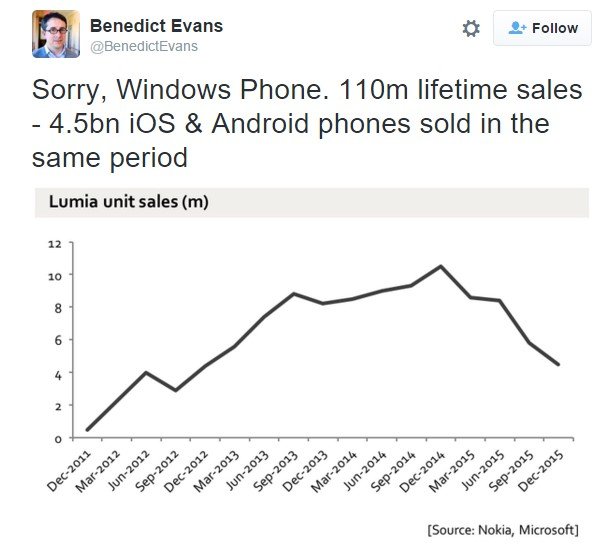 Eso es lo que decía Tom Warren en The Verge, y al discurso se sumaba Natasha Lomas en TechCrunch con un titular original (‘Windows Phone is an ex-platform‘) y por supuesto un John Gruber que con apenas 30 palabras ha expresado lo que muchos tenían claro: