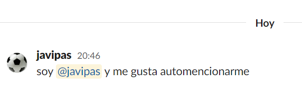Etiquetar a gente específica: otra opción interesante de Slack es la de mencionar a una persona específica ("@javipas, ¿qué tal te va?") para que a esa persona le llegue una notificación (que no tiene por qué llegar con mensajes genéricos, yo lo tengo así en Slack). Así te enteras cuando te mencionan y puedes lidiar con el resto de mensajes más tarde. La arrobita de Slack o de Twitter es idónea paraesto. Resulta que esta opción ya existe y yo sin enterarme :)