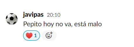- Reacciones: opción inspirada claramente en Slack, donde cada mensaje puede generar reacciones que son emoticonos convencionales. Eso aliviaría las conversaciones en esos grupos infernales del cole, por ejemplo. Cuando una madre pone aquello de "Pepito hoy no va, está malo" y las otras 29 madres ponen aquello de "¡Que se mejore!" sería sustituido por un contador con corazones o incluso con un emoticono personalizado. Algo tipo esto en Slack, pero en lugar de un corazón habría 29, claro):